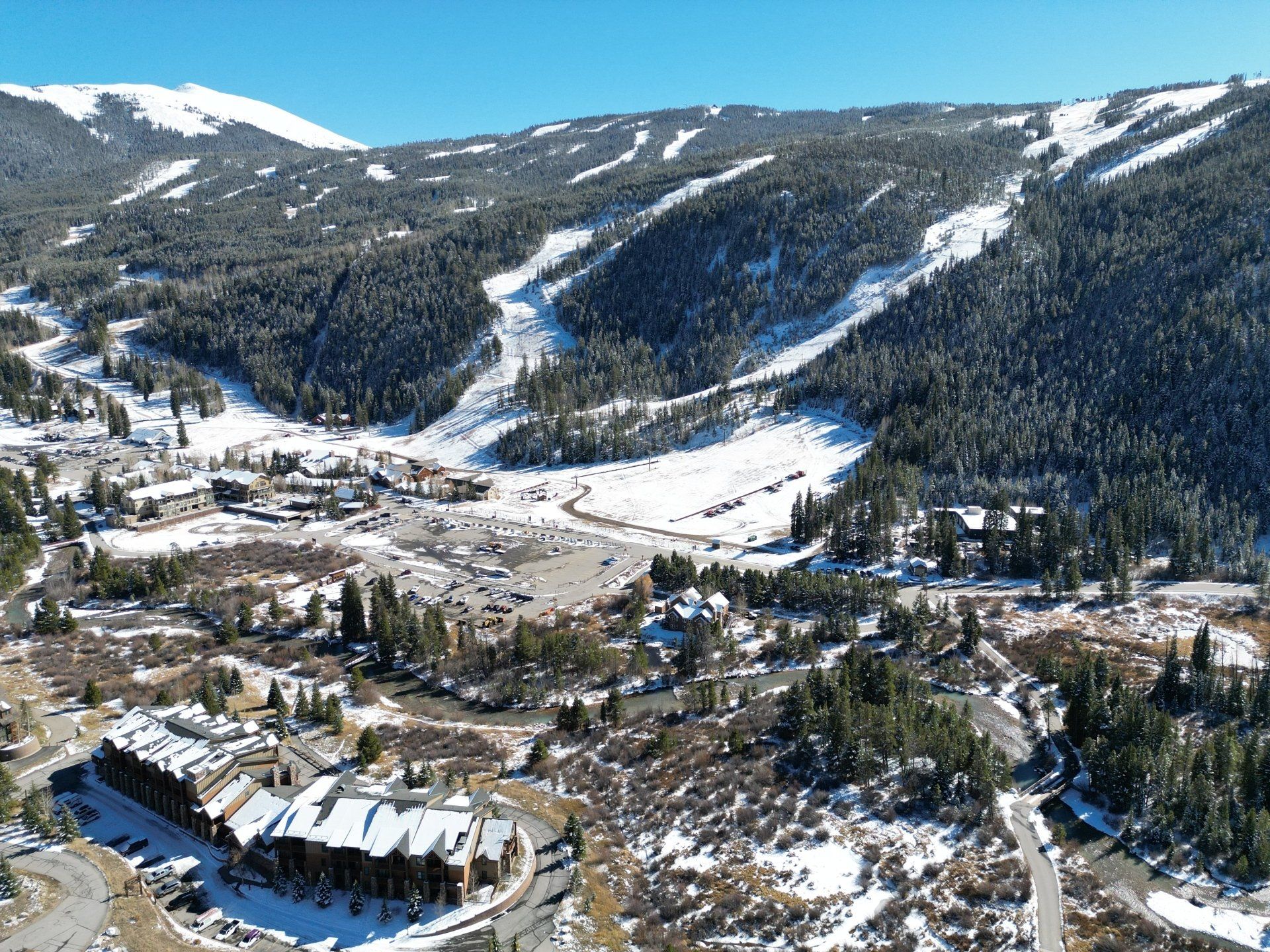 Hidden River Lodge is conveniently located in the resorts original mountain base area, Mountain House Village, and is a short walk to the beginners ski area and Peru Express lift. Located almost dead center of the entire resort. Hidden River offers great views and easy access to the entire resort.